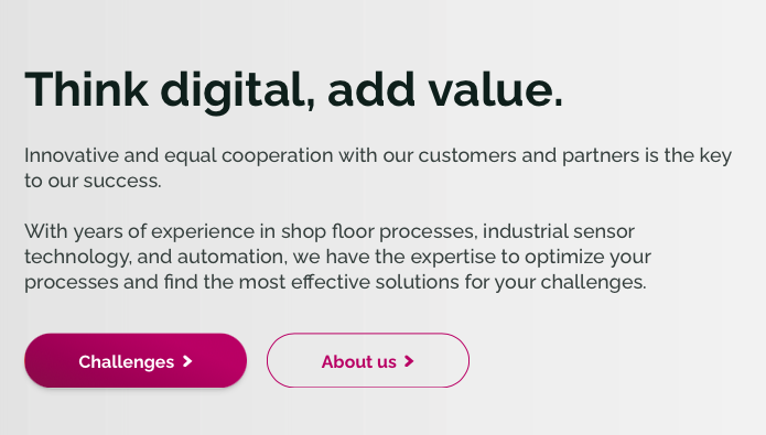 From a content perspective, the start-up needed a different tone of voice than the main Pepperl+Fuchs brand so that they could better appeal to companies that are still in their growth phase. Speaking to companies like this as equals successfully conveyed the required understanding for their processes and planning as a whole, and not just their sensor needs.
